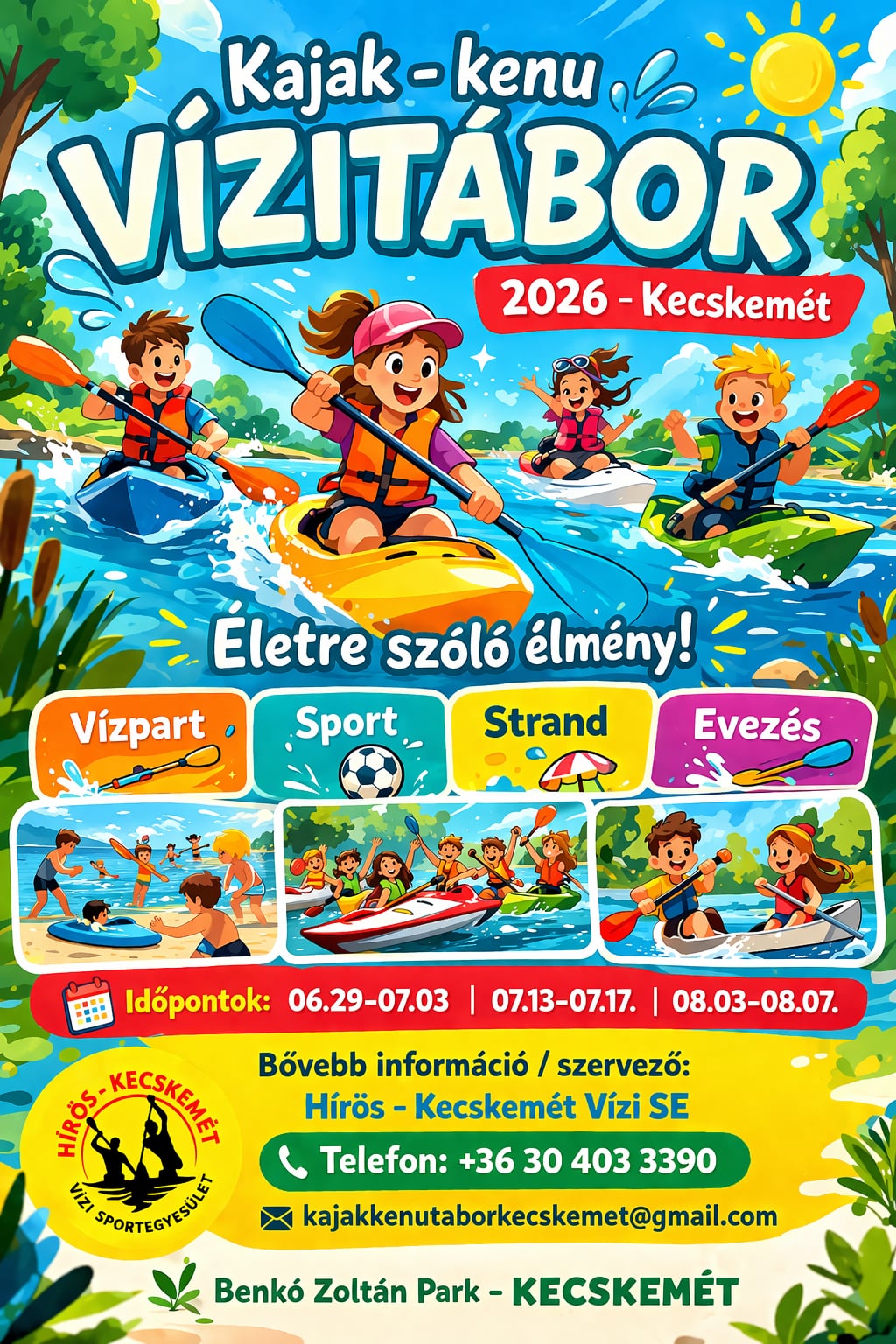 Csatlakozz hozzánk egy izgalmas nyári táborra, ahol a 6-12 éves úszni tudó gyerekek megismerkedhetnek a kajakozás és kenuzás alapjaival, miközben élvezik a természet közelségét és a friss levegőt.